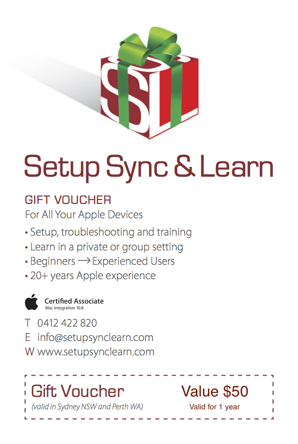 The perfect gift for friends or family with anything Apple - Mac computer, iPad, iPhone, Apple Watch, Apple TV. Give the gift of fast-tracked and fun learning in the comfort of their own home or office - an SSL Gift Voucher!